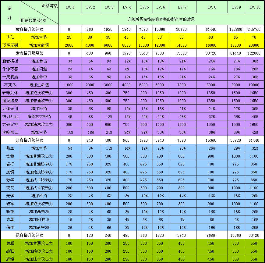 关于命格经验以每百点命格经验为单位计算。分两种方式进行,只点周一仙和全点。每种测试费用为500W,得出结论为只点周一仙大概费用在8.5W/100点,全点为6.5W/100点,嘿嘿,升级一个黄命大概需要1000W。