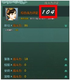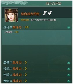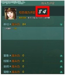 如图所示玩家三国争霸的综合战力评定为84,玩家三国争霸1的综合战力评定为104,所以当着两位选手在比赛中相遇时,三国争霸1将会顺利晋级;