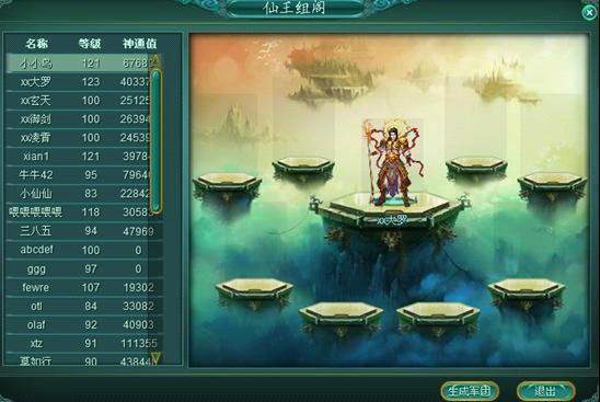 军团生成:在服务器中选取前排名前81名的战队,按照平均神通值分成9个档次,1-9、10-18…….72-81,然后再每一个档次中各选取一个战队共组成9个军团,分别分配给9大金将。